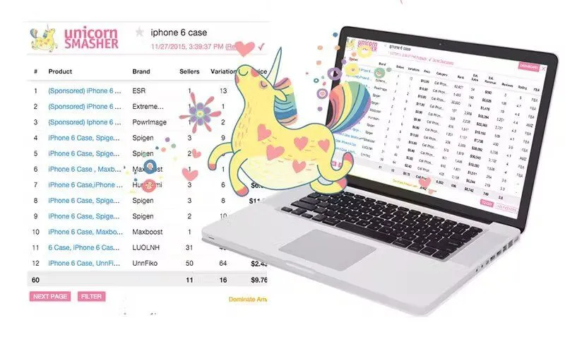 Unicorn Smasher is a great tool but be prepared for a crazy design when you first open it up. There’s a lot of graphics and colors to get past. Once you do, you’ll find a great tool with lots of great features, including monthly estimates, revenue estimates, data analysis, and more.